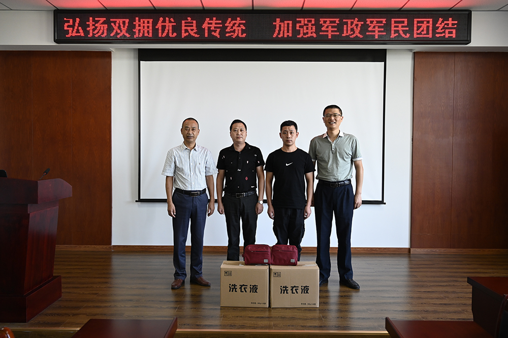 座談會后,張總代表公司向復員軍人送上慰問品,并合影留念。