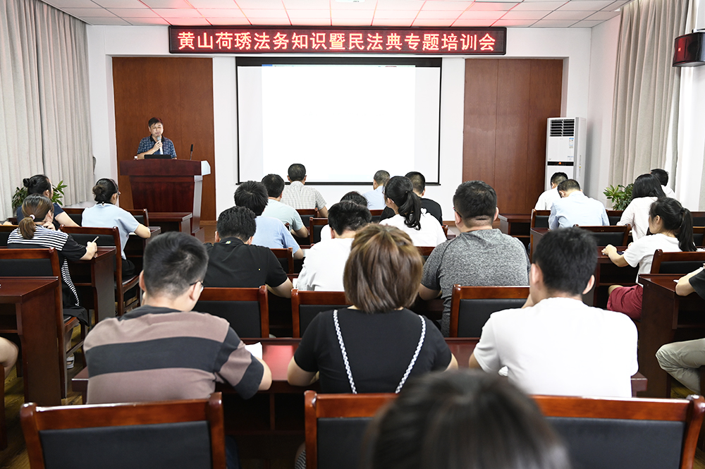 為促進(jìn)廣大職工學(xué)習(xí)、遵守、維護(hù)《中華人民共和國(guó)民法典》,提高運(yùn)用法務(wù)知識(shí)解決實(shí)際問(wèn)題的能力,8月7日下午,黃山荷琇公司組織了法務(wù)知識(shí)暨民法典專(zhuān)題培訓(xùn)。張昌宏總經(jīng)理主持培訓(xùn)會(huì),相關(guān)科室60余人參加學(xué)習(xí)。