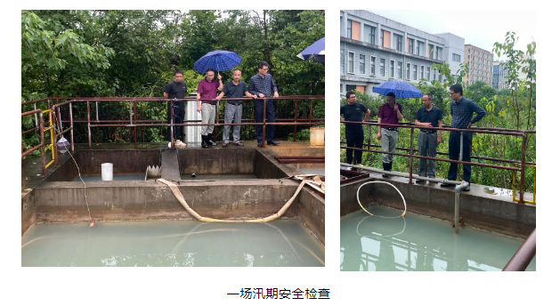 鑒于目前降雨量大,為確保汛期安全生產(chǎn)公司組織開展汛期隱患檢查,重點(diǎn)部位污水處理、雨水管道、滲漏風(fēng)險(xiǎn)區(qū)域安排專人定期巡查,及時(shí)排出隱患,確保安全平穩(wěn)度過汛期。